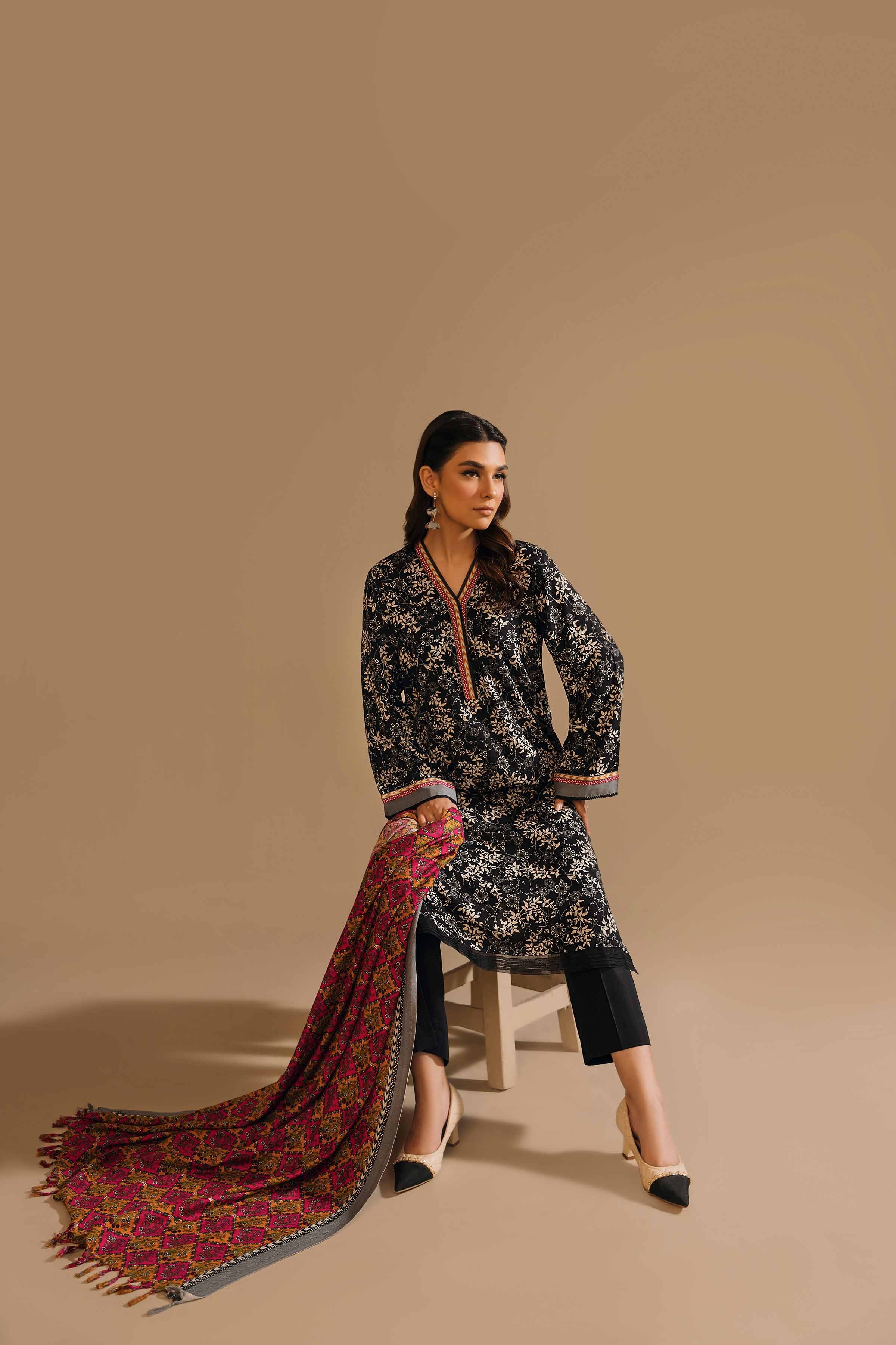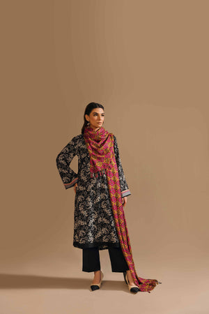 Elevate your winter wardrobe with the timeless charm of Nishat’s Premium Khaddar 3-Piece Suit – Noir Garden Elegance, a captivating blend of bold hues, intricate artistry, and warm winter comfort. This design embodies effortless sophistication, making it an essential choice for women who adore refined prints with a touch of tradition.