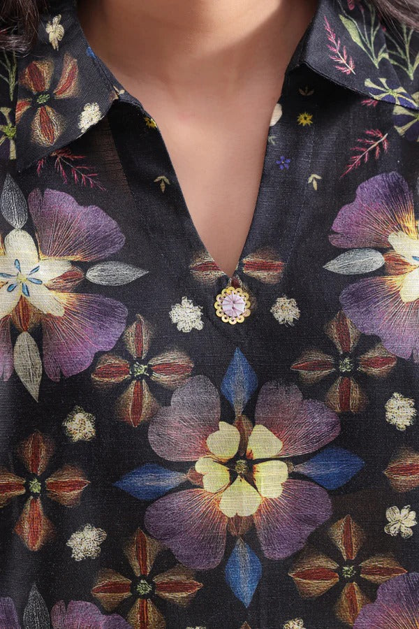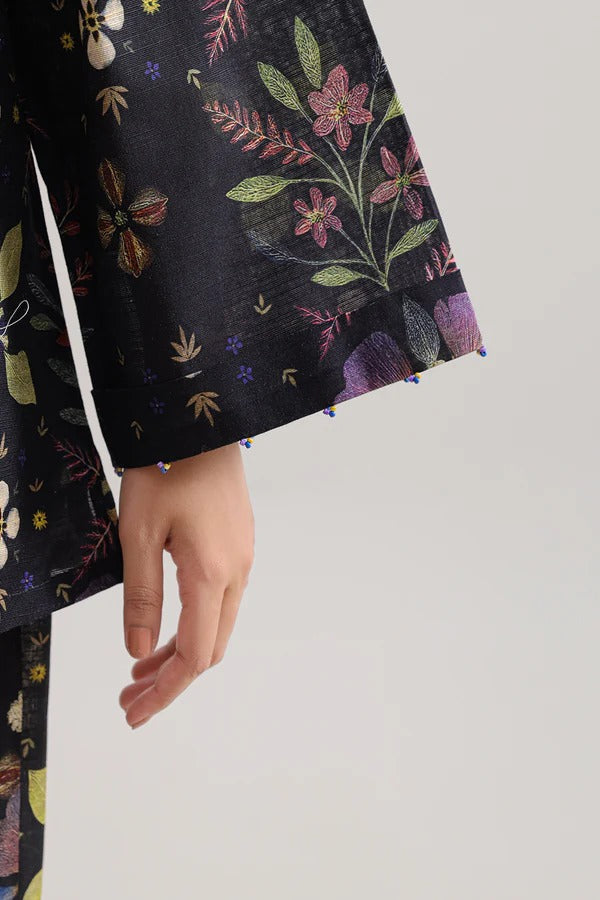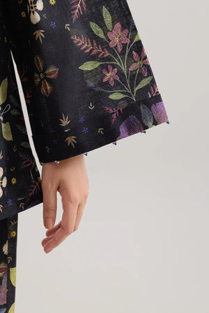 The premium printed cotton khaddar shirt, crafted with a wider width for enhanced comfort and elegance, features a rich black base adorned with soft floral motifs. The print combines muted pastels and deep tones, allowing the outfit to stand out beautifully without overpowering your look. Its straight, relaxed silhouette offers both stylish charm and practicality, making it an ideal choice for winter gatherings, workdays, or casual outings.