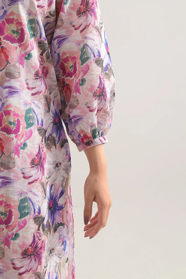 The premium printed cotton khaddar shirt, crafted in a generously wide 1.75 meter width, features a soft pastel floral design in shades of pink, blue, lavender, and green over a cool-toned base. The layered floral patterns give the shirt a refreshing and feminine look, while the relaxed stitching potential allows you to tailor the suit to your unique style. The classic shirt collar, long sleeves, and smooth khaddar texture together create a silhouette that is both modern and timeless.