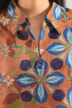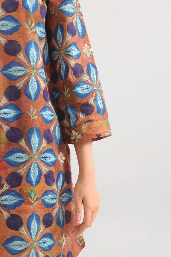 The premium printed cotton khaddar shirt features a wider width for enhanced comfort and a refined fall. Its striking mustard base combined with bold blue floral motifs brings a beautiful contrast, giving the ensemble a vibrant yet sophisticated look. Each print is digitally crafted to ensure clarity, richness, and long-lasting color—making it a standout piece for your wardrobe.