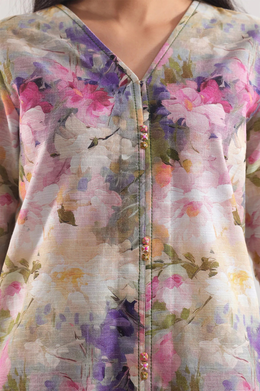 Complementing the shirt is the premium printed cotton khaddar trouser (1.8m) in a beautifully coordinated pastel watercolor design. Soft, breathable, and winter-friendly, the trouser fabric ensures ease of movement, making it perfect for all-day wear. The coordinated set offers a polished, cohesive, and fashion-forward winter look.