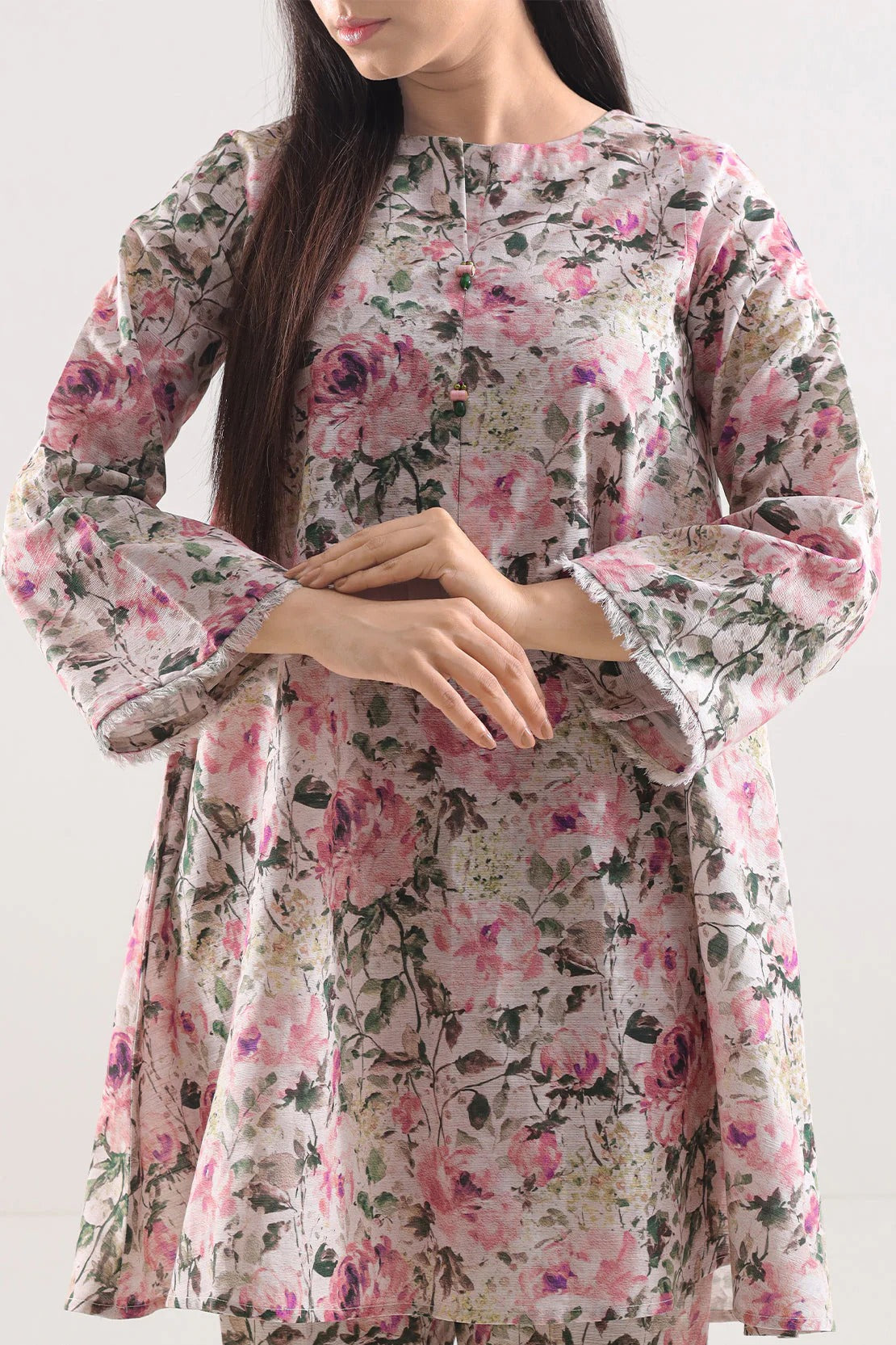 Completing the suit is an elegant premium printed cotton khaddar trouser (1.8m), designed in the same soft floral print for a seamlessly coordinated appearance. Warm yet breathable, the trousers ensure all-day comfort, making this 2-piece set ideal for winter outings, small gatherings, family lunches, office wear, or everyday styling.